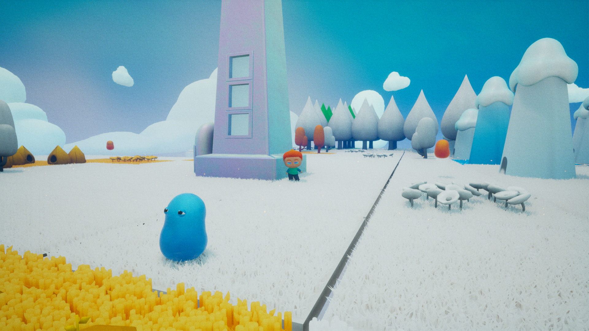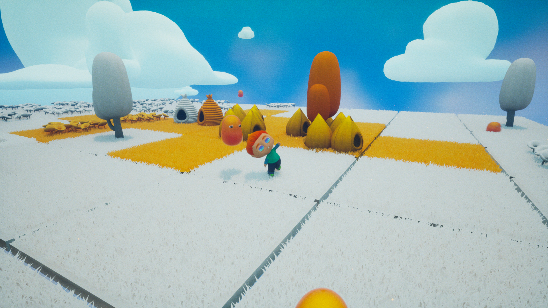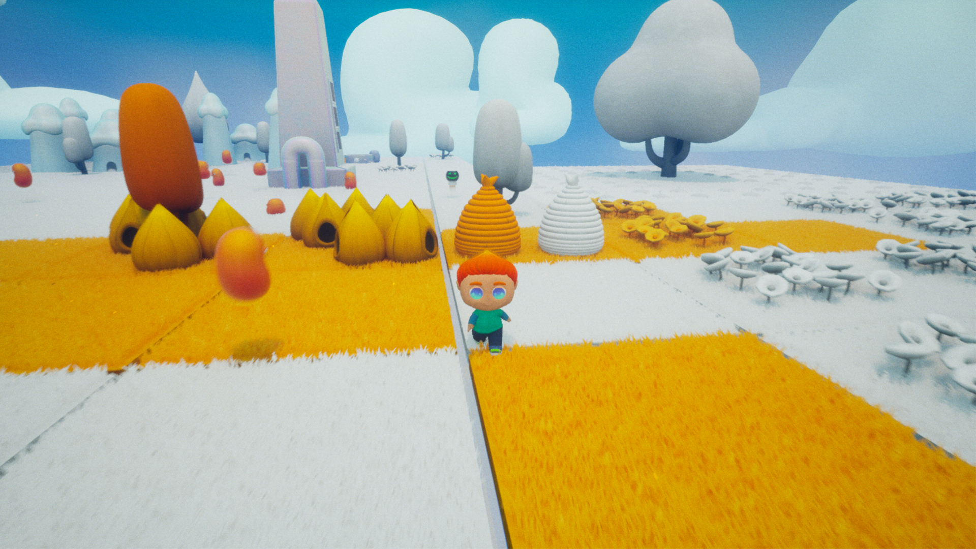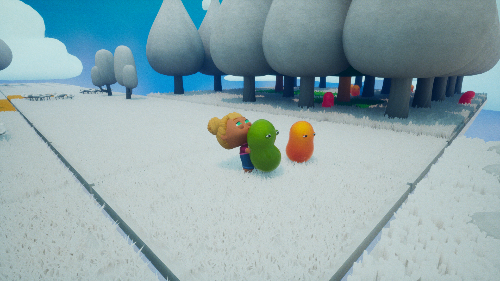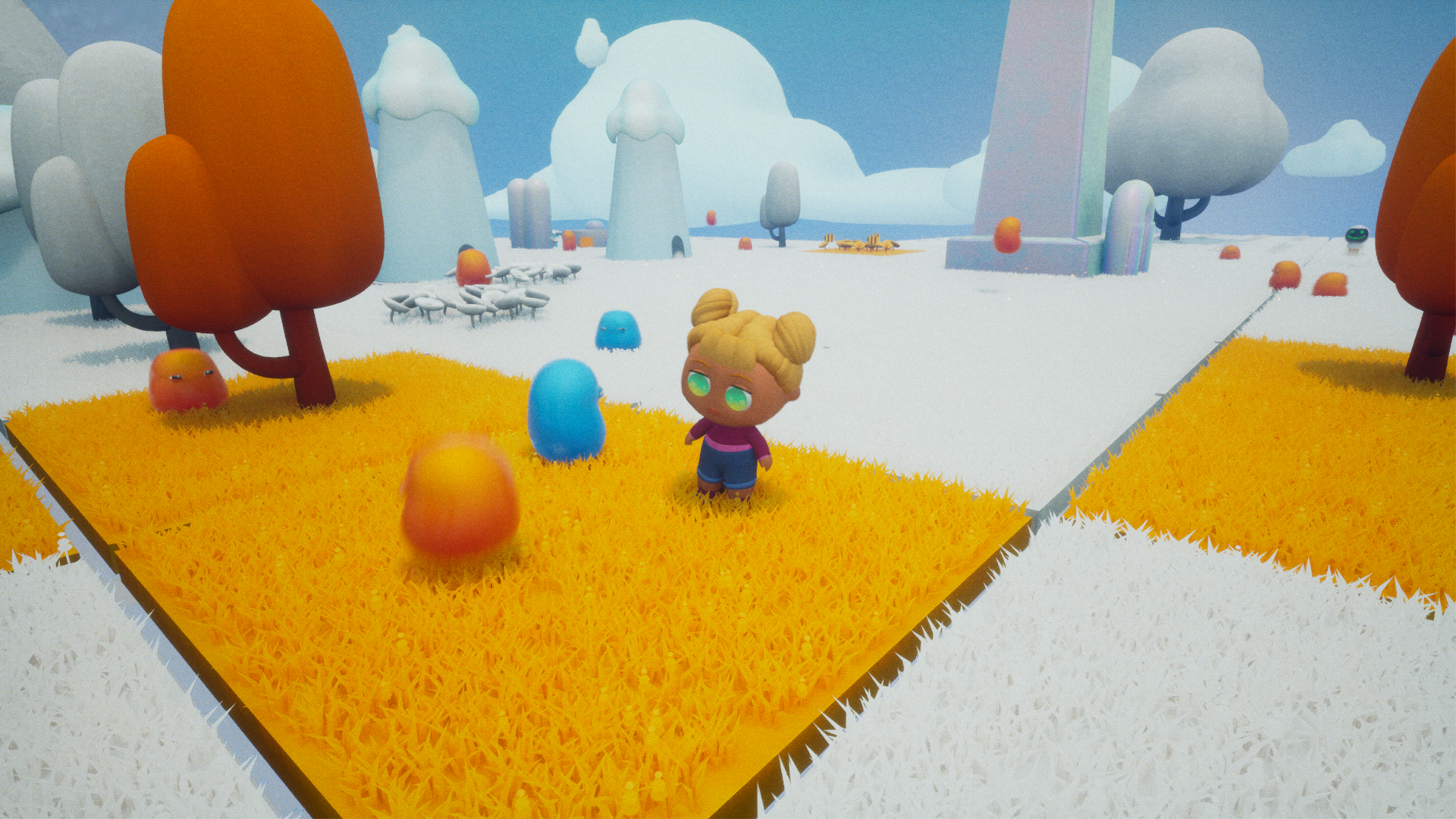 Creatures called "jellies" are created by collecting and mixing resources found in the environment. Each jelly colour has different abilities, and can interact with different objects in the environment. The recipes for each jelly colour, and which colours match which object are a mystery.