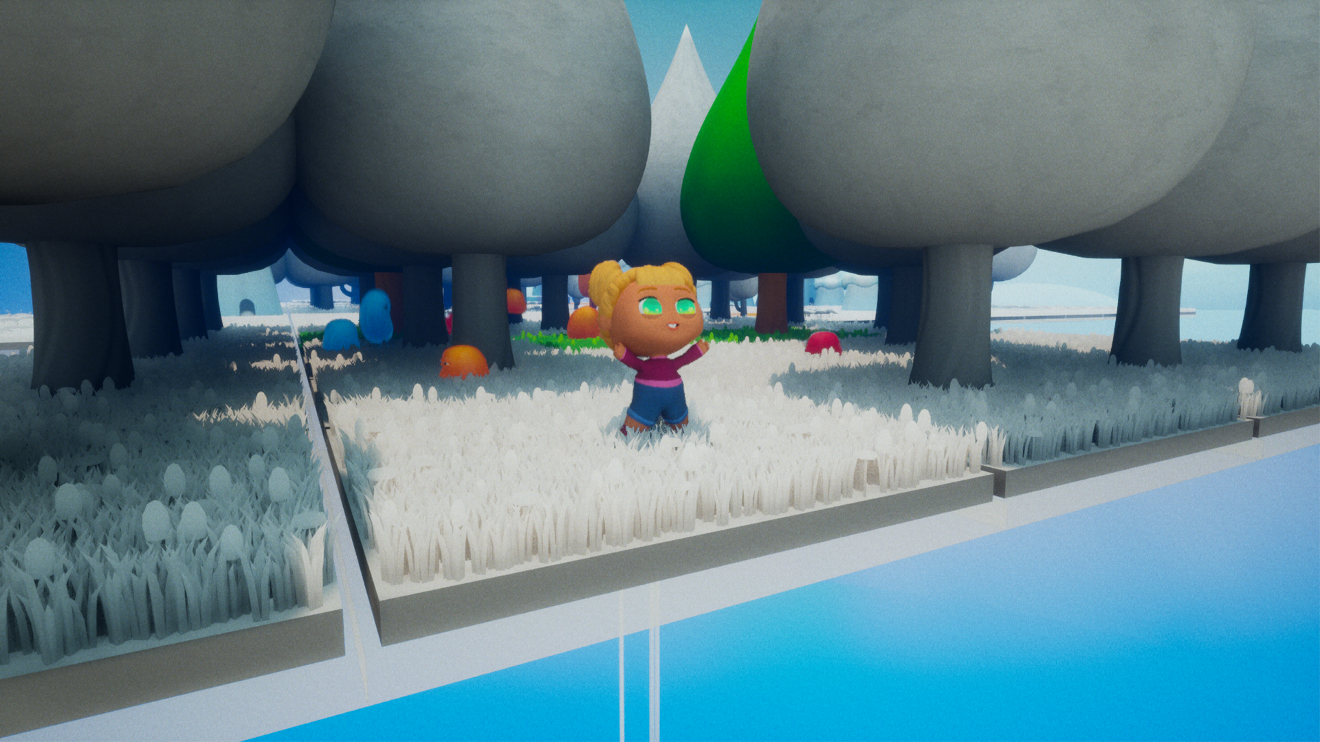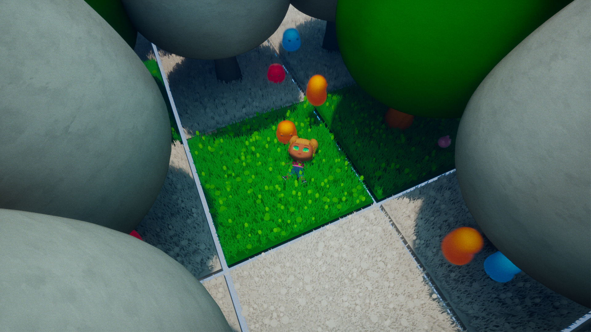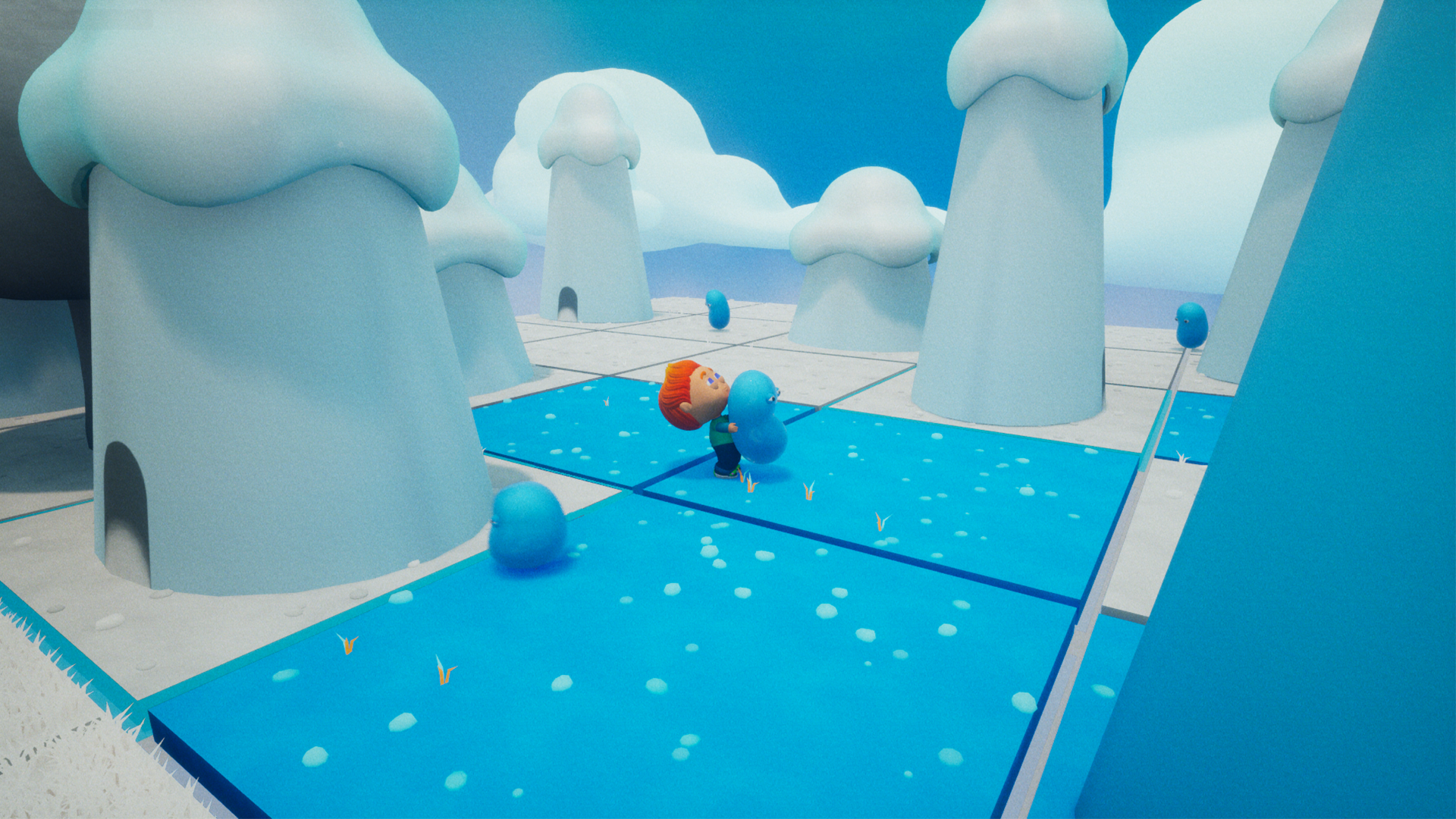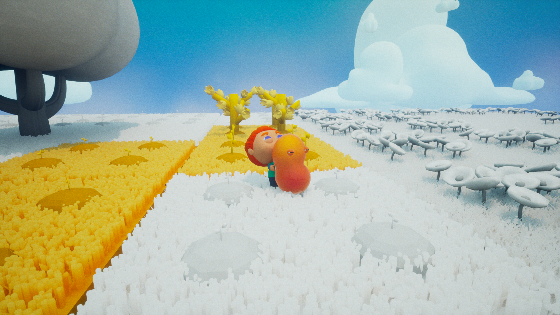 Creatures called "jellies" are created by collecting and mixing resources found in the environment. Each jelly colour has different abilities, and can interact with different objects in the environment. The recipes for each jelly colour, and which colours match which object are a mystery.