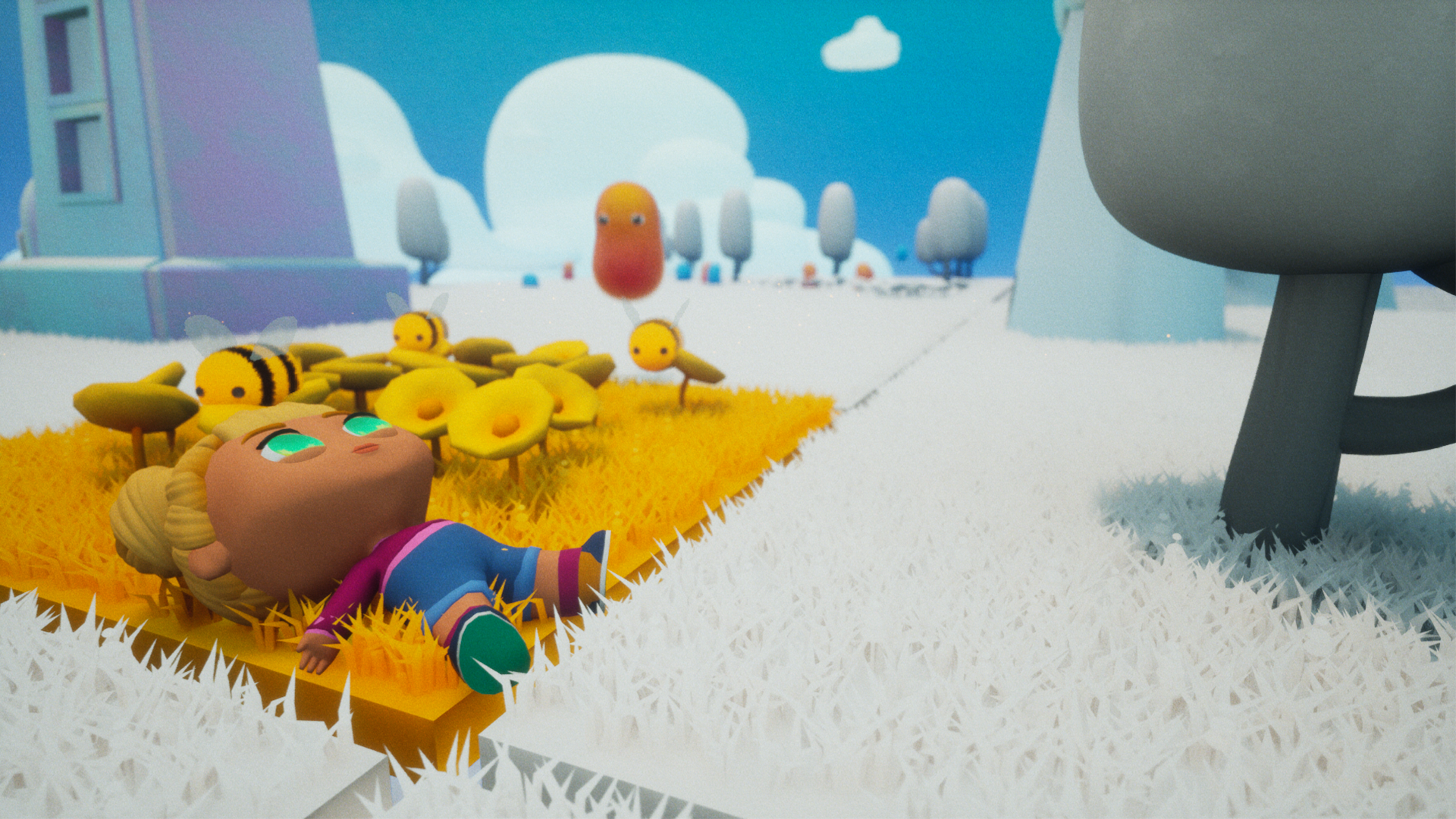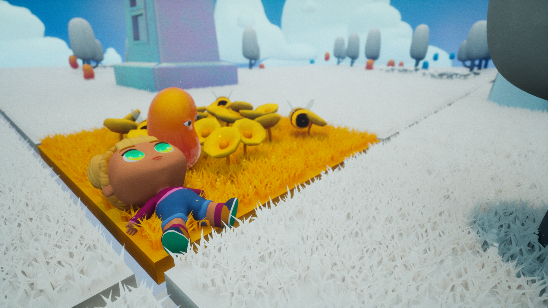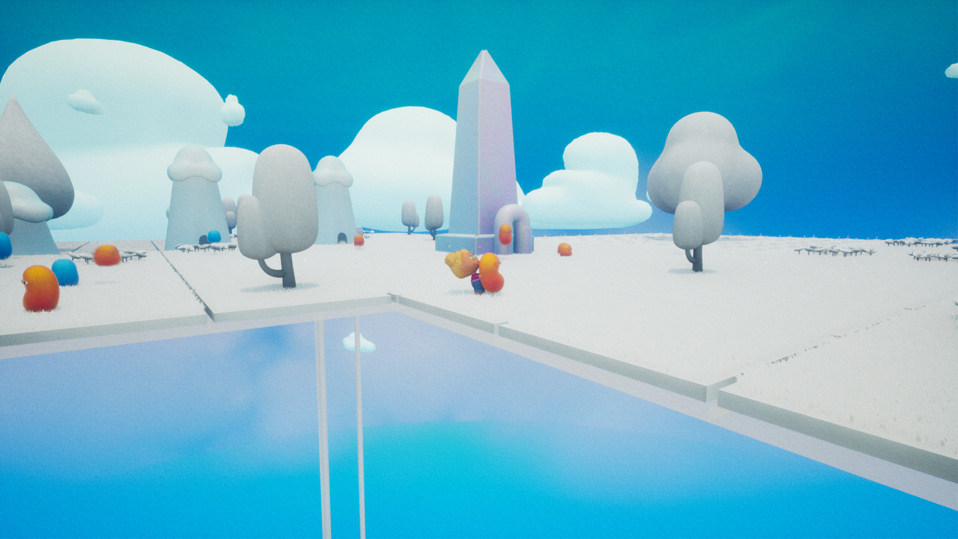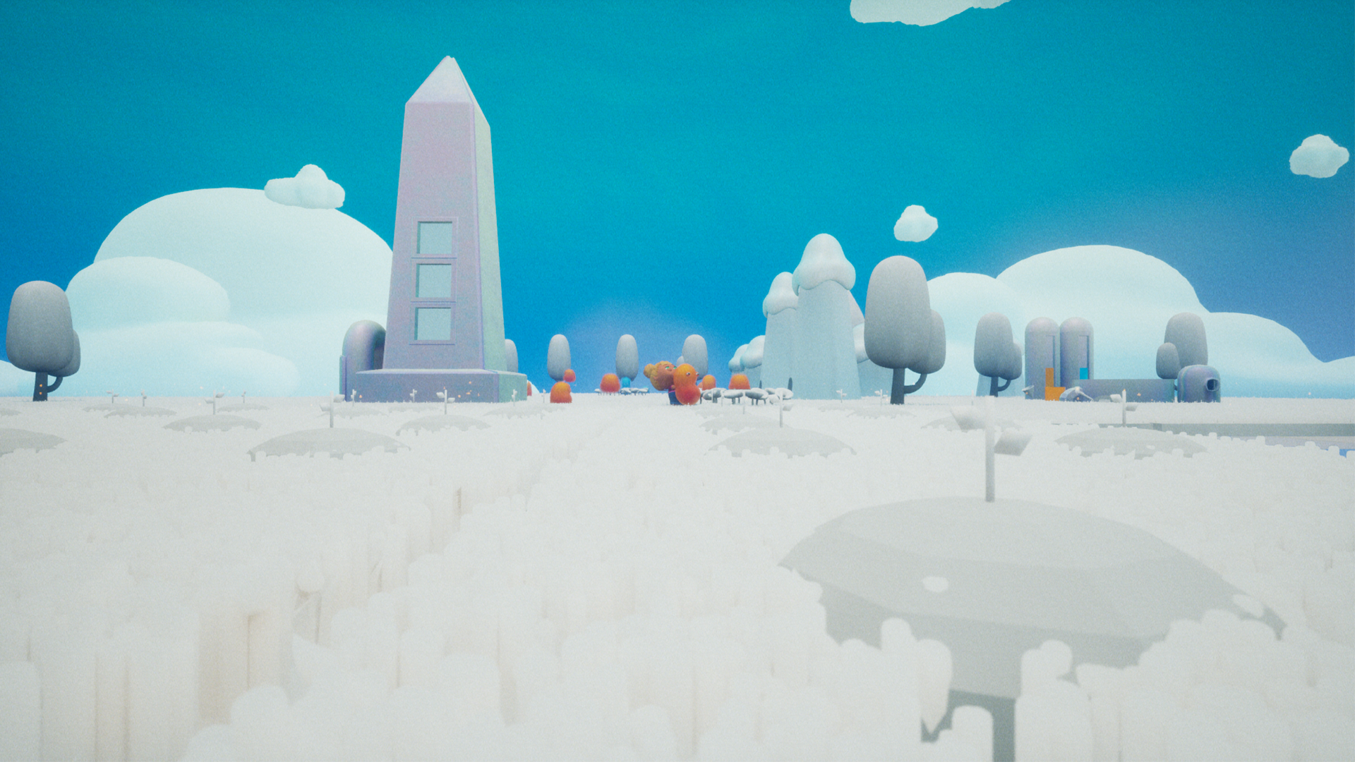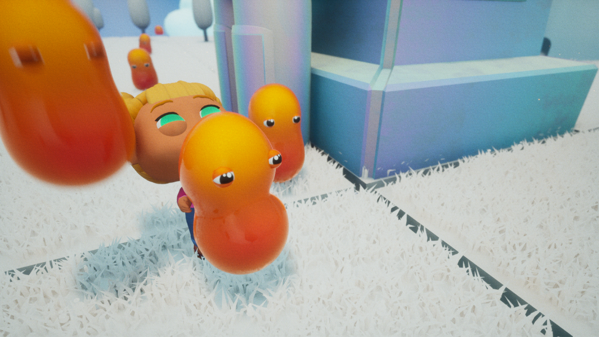 Creatures called "jellies" are created by collecting and mixing resources found in the environment. Each jelly colour has different abilities, and can interact with different objects in the environment. The recipes for each jelly colour, and which colours match which object are a mystery.